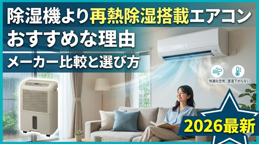除湿機より再熱除湿搭載エアコンがおすすめな理由2026|ダイキン・三菱・日立メーカー比較