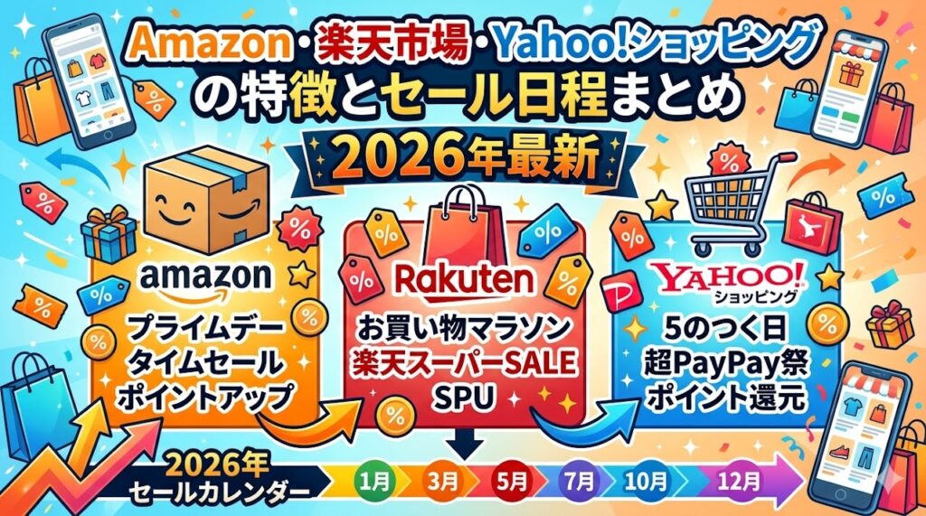 【2026年最新】Amazon・楽天市場・Yahoo!ショッピング セール年間カレンダーと攻略法を徹底比較