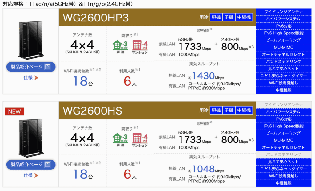 全種類比較!NEC おすすめ無線LAN Wi-Fiルーター