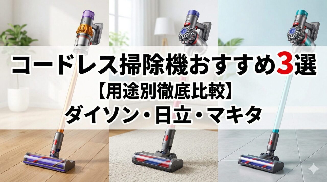 コードレス掃除機を選ぶなら、吸引力・軽さ・バッテリー持続時間の3点が重要です。春の大掃除シーズンに向け、人気3モデルを用途別に徹底比較します。