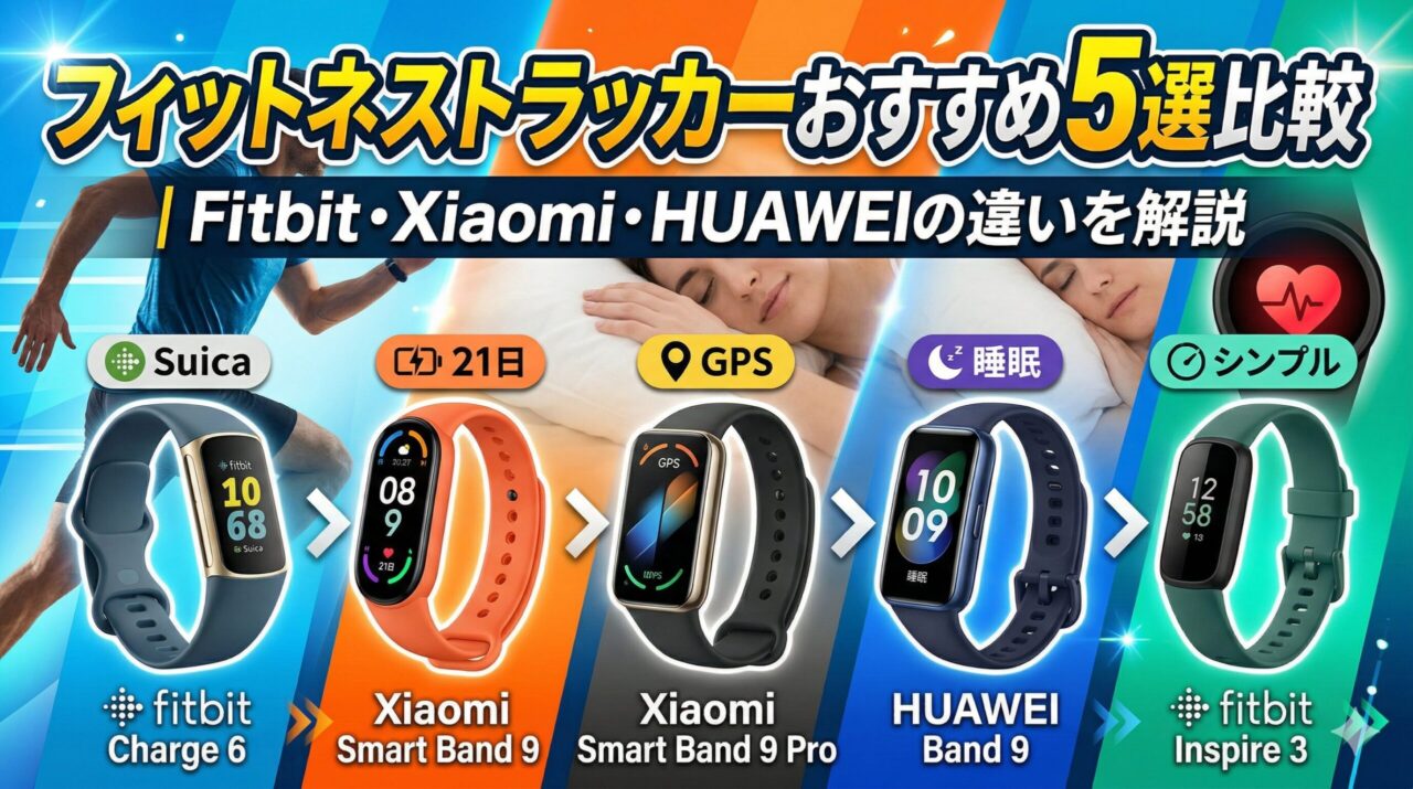 本記事では、2026年最新のフィットネストラッカーおすすめ5機種を機能・バッテリー持ち・価格の観点から徹底比較。Fitbit・Xiaomi・HUAWEIの特徴と違いを分かりやすく解説します。
